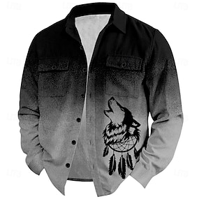 Jul Herre Ulv Kordfløyel skjorte Skjorte jakke Overskjorte Langermet Årgang Stamme utendørs Hverdag Høst vinter Aftæpning Skjorter med krage Knapper 3D-utskrift 2 lommer 1 stk Svart Grå Militærgrønn