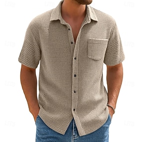 Herre Skjorte Uformell skjorte Vaffelstrikket skjorte Svart Hvit Burgunder Mørkegrønn Kakifarget Kortermet عادي Skjortekrage Avslappet Daglig Knapper Klær Elegant Mote Fritid