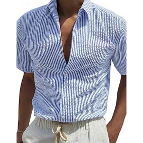 Herre Skjorte med knapp ned Uformell skjorte Seersucker skjorte Svart Gul Lysegrønn Rosa Lilla Kortermet Stripet Knaphul Avslappet Daglig Knapper Klær Gatemote Fritid