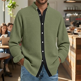 Herre Skjorte Vaffelskjorte Uformell skjorte Skjorte med knapper Blå Hvit Vin Grønn Kakifarget Langermet Fargeblokk Knaphul Avslappet Daglig Klær Mote Moderne Fritid Bekvem
