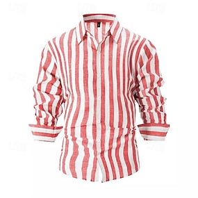 Herre Skjorte Linskjorte Sommerskjorte Uformell skjorte Strandskjorte Bomullsskjorte Stribe Feriereise Hawaiisk Svart Rosa Rød Himmelblå Langermet Aftæpning Vår & Vinter Klær Knapp ned