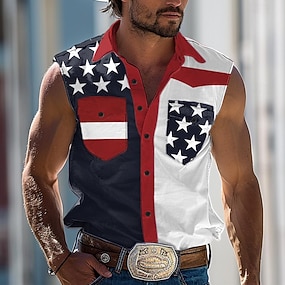 Herre Amerikansk / USA Nasjonalflagg Skjorte Western skjorte Cowboyskjorte Ermeløs vestlig stil utendørs Fest Sommer Vår Skjortekrage Hvit