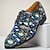 herresko med blå blomsterprint og oxford-snøre, elegante statement-sko til bryllupsgjester, banketter, fester, skoleball og formelt kveldsantrekk