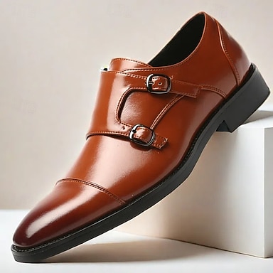 burgunder dobbel munk-reim sko i imitert skinn - elegante slip-on dress-sko for bryllup og formelle anledninger