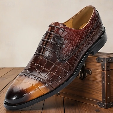 oxford-sko for menn med krokodillemønster - formell kjole med snøresko i kunstskinn for forretnings- og spesielle anledninger