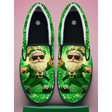 Herresko med slip-on-motiv til St. Patricks dag – morsom grønnfarge med leprechaun-design, perfekt for St. Patricks dag-festligheter og fritidsklær