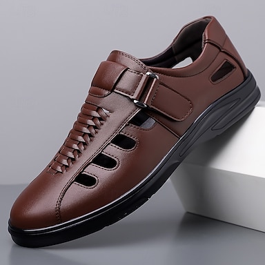 Brune sandaler i kunstskinn for menn – komfortable strandsko med åpen tå for reiser, turgåing og utendørsaktiviteter om sommeren