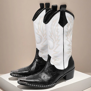 Svarte og hvite western cowboystøvler for menn – broderte høye rodeostøvler for ranchstil, countryarrangementer og linedance