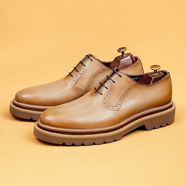 Herre Støvler Arbeidsstøvler Gange Årgang Daglig PU Økende høyde Bekvem Støvletter Snøring Mandel Svart Gul Høst Vinter