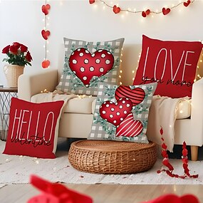 Putetrekk med valentinsdagsmotiv, hjertemønster i lin, koselig sofa &bildekor, myk aksentpute til stue, soverom, &bilinteriør