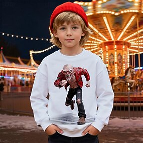 Gutt 3D Grafisk Tegneserie Genser Langermet Vår Høst Mote Grunnleggende Barn 4-12 år Crew-hals utendørs Avslappet Daglig Normal