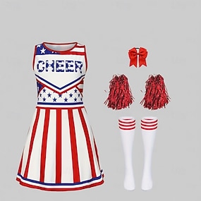 kjole antrekk cheerleader cosplay barn jenter halloween karneval uavhengighetsdag / fjerde juli fest forestilling maskerade utkledning