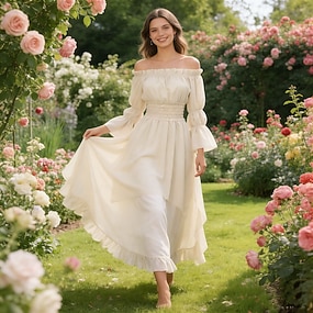 Retro / vintage Kostymer i middelalderstil Renessanse Mini Kjoler Flare kjole Puffermer Elven Løse skuldre Regency inspirert Helfarge Kostyme Dame fantasi Feriereise Fritid / hverdag LARP Voksne Kjole