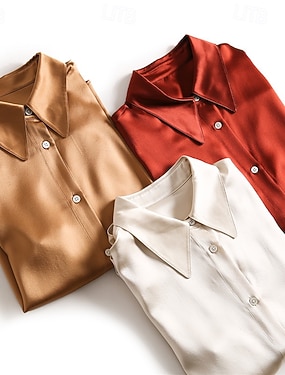 Dame Skjorte Elegant Satengtopp Silkeskjorte Knapper عادي Elegant Stilfull Langermet Skjortekrage Vanlige topper Daglig Arbeid Ferie Champagne Rød Vår