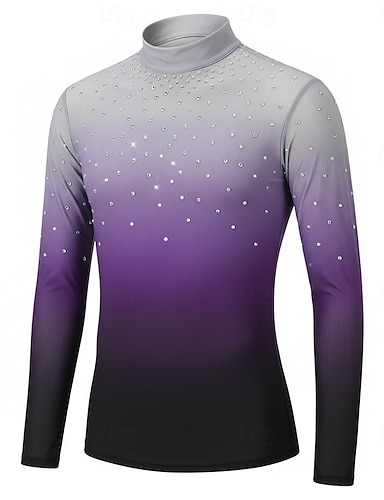 Topp til kunstløp Herre Skøyteløp Topper Lilla Lapper halo-farging Elastisk Trening Konkurranse Skøyteklær Klassisk Krystall / Rhinstein Langermet Skøyting Kunstløp