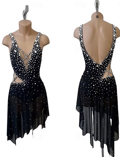 Kjole til kunstløp Dame Skøyteløp Kjoler Svart Lapper Åben Ryg Elastisk Trening Konkurranse Skøyteklær Klassisk Krystall / Rhinstein Ermeløs Skøyting Kunstløp