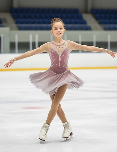Kjole til kunstløp Jente Skøyteløp Kjoler Dusty Rose Lapper Asymetrisk kant Elastisk Trening Konkurranse Skøyteklær Klassisk Krystall / Rhinstein Langermet Skøyting Kunstløp