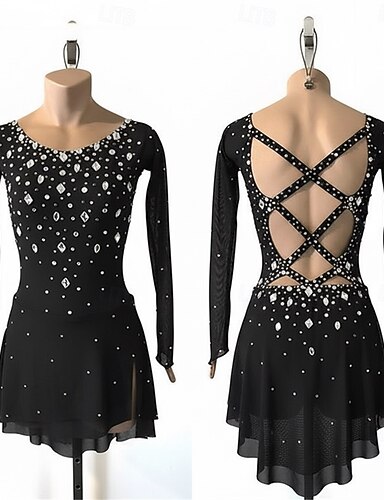 Kjole til kunstløp Dame Jente Skøyteløp Kjoler Svart Åben Ryg Netting Høy Elastisitet Trening Konkurranse Skøyteklær Klassisk Krystall / Rhinstein Langermet Skøyting Kunstløp