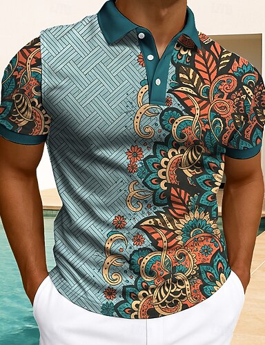 Herre Blomstermønster Polo Kortermet Poloskjorter Skjorter med krage Fritid treningsklær Dagligdagstøy Knapper Sommer Blå Rød Grønn