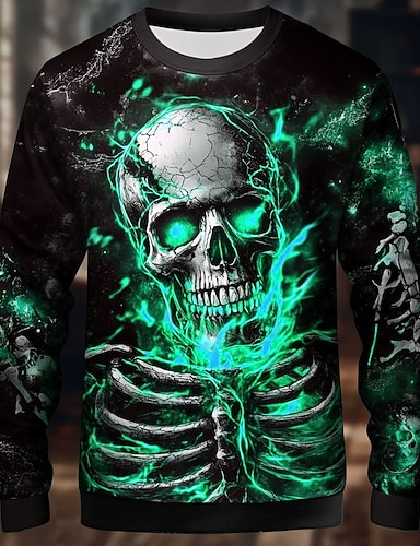 Herre Zombier 3D Genser Punk Fest Gotisk Langermet Crew-hals Feriereise Lysegrønn Grønn Kakifarget Crewneck 3D Alle årstider Designer S M L XL XXL XXXL