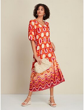 Dame Swingkjole Print kjole Løs kjole Maxikjole Oransje Halv-ermet Linjer / bølger Printer Lang Vår sommer V-hals Fritid hverdag Strand S M L
