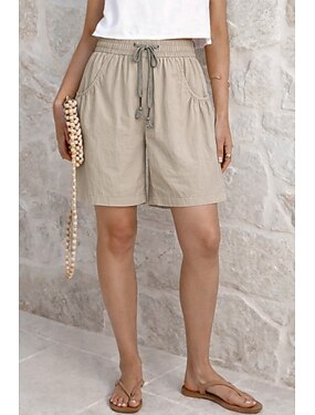 Dame Imitert bomullslin Shorts Sommershorts Strandshorts Ferie Mote Fritid hverdag Kort Høy Midje Helfarge عادي Snorer Lapper Elastisk midje Komfort Myk Pustende Uelastisk Gateklær Strand Ferie
