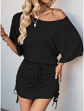 Dame Mini kjole Kjole med A-linje Sommerkjole Fritid Daglig Tynn عادي Langermet Båthals Svart Sommer