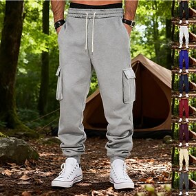 Herre Fleecebukser Joggebukser Jogger Bukser Cargo joggebukse Snorer Elastisk midje Multi lomme Helfarge Vindtett Utendørs Full lengde Avslappet Daglig Mote Gatemote Løstsittende Svart Hvit