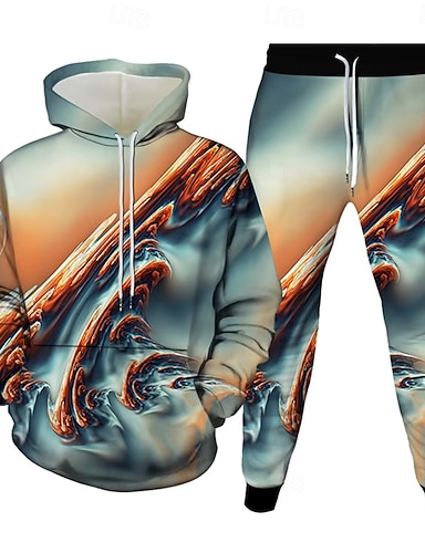 Herre Grafisk Tegneserie Abstrakt 2stk 3D-genseresett Joggedress Hettegensere Langermet Lange bukser Med hette Gatemote Sportsklær Grunnleggende Sport & Utendørs Avslappet Sport Trykt mønster Lomme