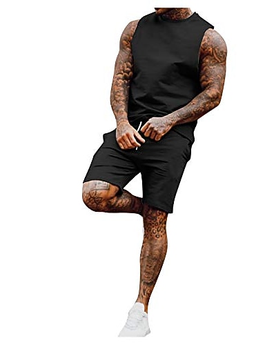 Herre Treningssett Joggedress Genser og shorts Sett Antrekkssett Crew-hals Daglig utendørs Sport Snorer Lomme 2 deler عادي Svart Kakifarget Grå Sportsklær Klassisk Fritid Sommer