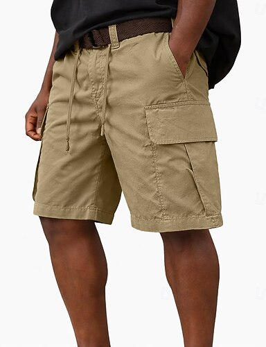 Herre Lastebukser Cargoshorts Shorts Casual shorts Lomme Elastisk midje عادي Over Knæet Avslappet utendørs Gateklær Mote Gatemote Svart Brun Mikroelastisk