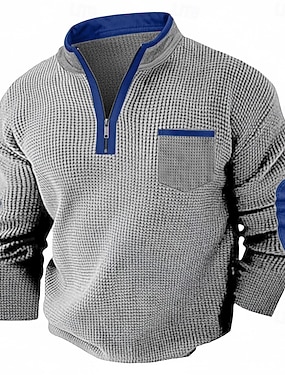 Herre Vaffel T-skjorte T skjorte Vaffel Henley-skjorte Langermet Halv glidelås Høst Høst vinter Helfarge Lapper Tradisjonell / vintage Fritid Lapper Fargeblokk Avslappet Hjem utendørs Blå Grønn