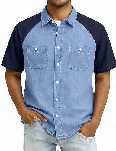 Herre Kokosnøttre T skjorte Deminskjorte 100% bomullssyre-vaskeskjorte Kortermet Årgang Gatemote Fritid Avslappet Hjem Gate Høst vinter Sommer Vår Svart Rosa Lys Grønn Grå Lyseblå Høy krage Henley