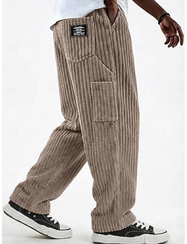 Herre Bukser Kordfløyel bukse Vinterbukser Uformelle bukser Posete bukser Snorer Multi lomme Helfarge Komfort Full lengde Avslappet Daglig utendørs Mote Gatemote Blå Svart Mikroelastisk