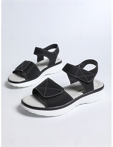 Svarte sandaler med kamskjellkant til dame – uformelle strandsandaler med lav hæl for sommerferien