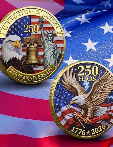 Amerikansk minnemynt til 250-årsjubileum 1776–2026, patriotisk medalje for hvithodeørn, e pluribus unum, 250 år med frihet, samlergave fra amerikansk historie