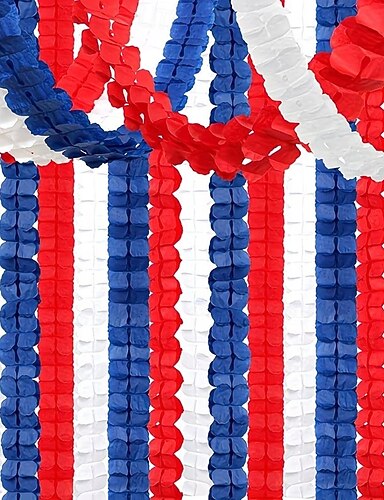 6 stk. rød, hvit og blå papir latte art festgirlander, dekorasjon til USAs uavhengighetsdag, minnedag, uavhengighetsdag, arbeidernes dag