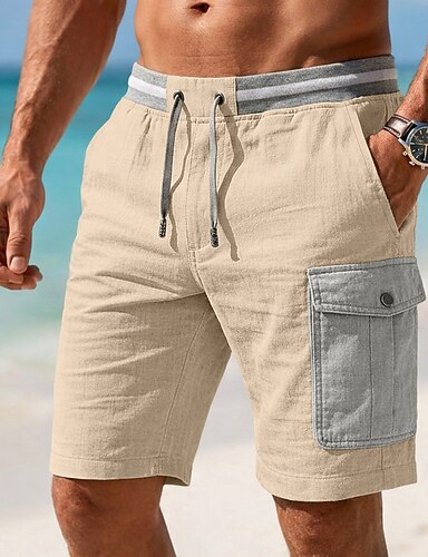 Herre Shorts Lin Shorts Sommershorts Strandshorts Snorer Lomme Elastisk midje Fargeblokk Ensfarget Komfort Pustende Kort Avslappet Daglig Strand Ferie Mote Mørk kaki Svart Uelastisk