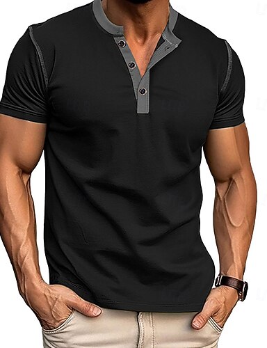 Herre T skjorte Henly-skjorte Kortermet skjorte T-skjorte Kortermet Henley Sommer Vår عادي Gatemote Stilfull Fritid Lapper Avslappet Daglig utendørs Blå Vinrød Sjø blå Topp T-skjorte for menn