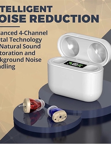 Oppladbare høreapparater for eldre - digital personlig lydforsterkerpar i øret med overlegen lydkvalitet, intelligent støyreduksjon, effektdisplay &lengst batterilevetid