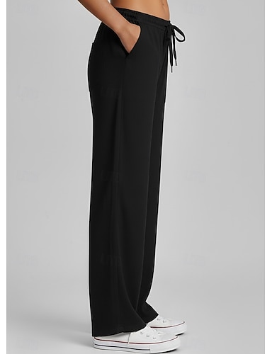Dame Store størrelser Sommerbukser 100% قطن Ferie Grunnleggende Fritid hverdag Full lengde Høy Midje Helfarge Snorer Bred Bukseben comfy Komfort Hurtigtørkende Mikroelastisk Dagligdagstøy Grå Svart