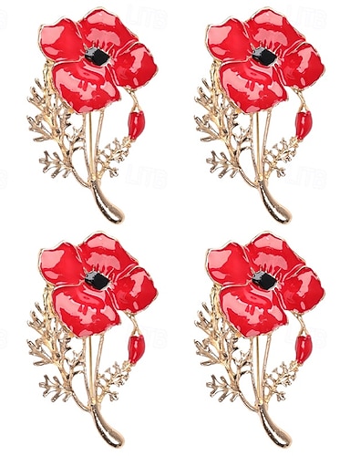 4 stk. brosje for minnedagen, brosjenåler i emalje i legering med valmueblomst, moteriktige elegante jakkeslagsnåler til dame, til blazer, cardigan, dresscorsage-tilbehør, patriotisk gaveidee