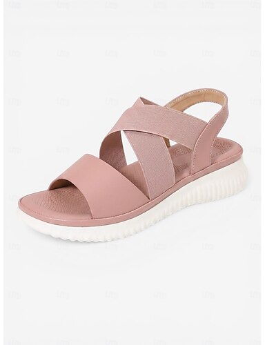 Rosa komfortsandaler med støtte for buen til dame – elastisk kryssreimdesign, lette sportsandaler for sommerturer og reiser &daglig bruk