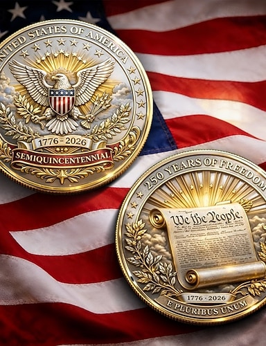 Amerikansk minnemynt til 250-årsjubileum, patriotisk samlermynt med ørn &«Vi folket»-rulldesign, slitesterk metallsuvenir til utstilling, 1776–2026 halvårsjubileum