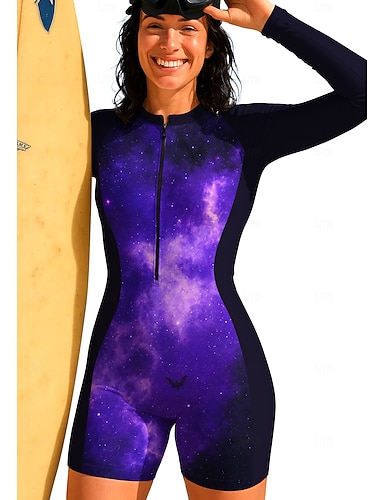 Dame Rash-guard One-Piece Badetøy Trykket Forside Glidelås Spandex UV Solbeskyttelse UPF50+ Hurtigtørkende Langermet Kroppsdrakt Badedrakt Surfing Strand Vannsport Sommer