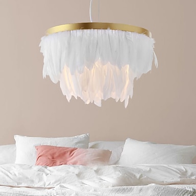 led pendel lys lysekrone med hvit strutsefjær enkel lett metall led pendel lys moderne tak hengende lys for soverom hotell spisestue restaurant