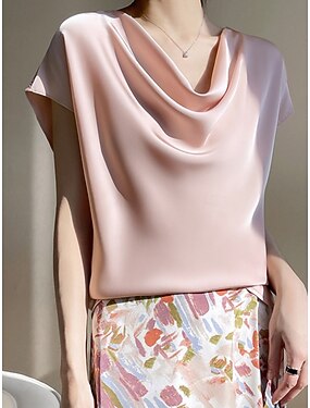Dame Bluse Rynket Helfarge Elegant Stilfull Grunnleggende Kortermet Cowl-hals Vanlige topper Daglig Svart Champagne Rosa Grønn Beige Sommer Vår