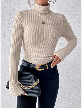 Dame Bluse Helfarge Elegant Stilfull Grunnleggende Langermet Rullekrage Vanlige topper Daglig Svart Hvit Rosa Brun Beige Vår Høst Vinter