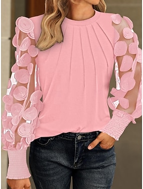 Valentinsdag Dame Bluse Trange topper Topper med paljetter Glimmer Netting Helfarge Stilfull Sexy Fritid Langermet Crew-hals Vanlige topper Daglig Ferie Ut på byen Svart Vår Høst