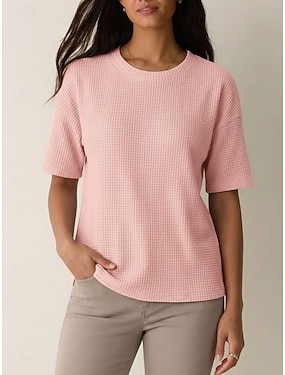 Dame Vaffelskjorte T skjorte T-skjorter Vaffelstrikkede topper Helfarge Klassisk Moderne Fritid Kortermet Crew-hals Vanlige topper Daglig Ferie Ut på byen Svart Hvit Gul Rosa Vin Sommer Vår